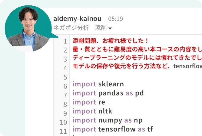 私はE資格対策講座を受けた後、2回目の試験で合格しました。アイデミー独自の合格保証制度で合格までサポートしていただけたことは、非常に魅力的でした。